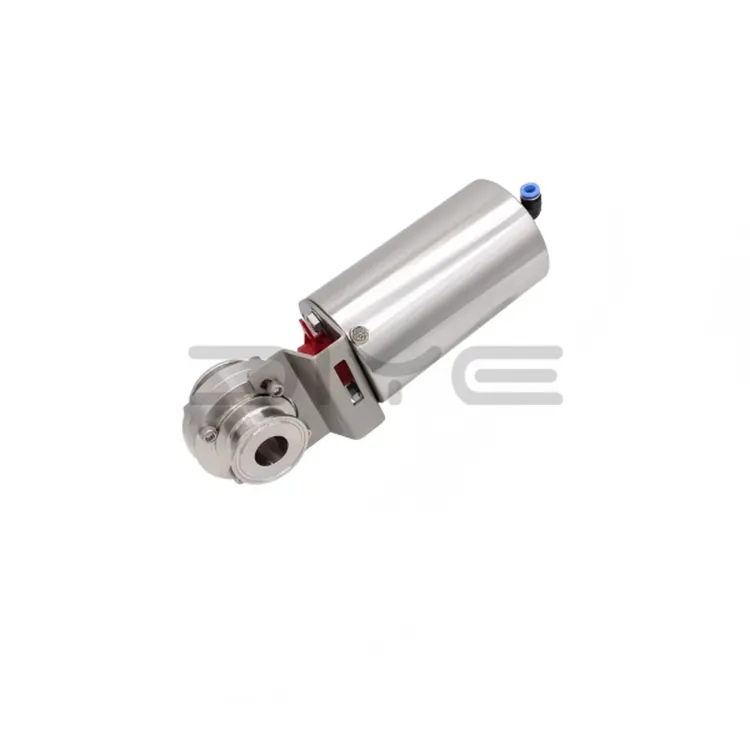 वायमेटिक अपरेट गरिएको सेनेटरी बटरफ्लाइ भल्भको वायमेटिक एक्चुएटरले भल्भ डिस्क घुमाउन भल्भ स्टेमलाई चलाउँछ, यसरी भल्भ खोल्छ र बन्द हुन्छ। जब हावा एक्चुएटरको एक छेउमा प्रवेश गर्छ, यसले पिस्टनलाई धक्का दिन्छ, जसले भल्भ स्टेम घुमाउँछ, खोल्ने र बन्द गर्ने कार्य पूरा गर्दछ। एक्चुएटर संरचनामा निर्भर गर्दै, यो दुई मोडहरूमा उपलब्ध छ: डबल-अभिनय र एकल-अभिनय।